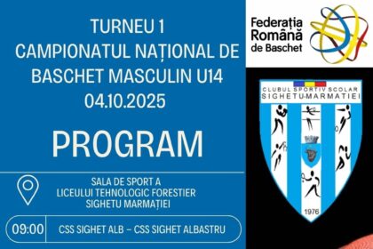 Clubul Sportiv Școlar Sighet găzduiește primul turneu din cadrul Campionatului Național de Baschet Masculin U14. Evenimentul sportiv va avea loc sâmbătă, 4 octombrie, în Sala de sport a Liceului Tehnologic Forestier din Sighetu Marmației, și face parte din seria celor 14 turnee care vor avea loc la nivel național.