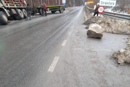 Bolovan prăbușit pe carosabil în zona Mănăstirii Bârsana