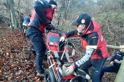 VIDEO: Salvamontiștii au intervenit pentru recuperarea unui bărbat, victimă a unui accident forestier