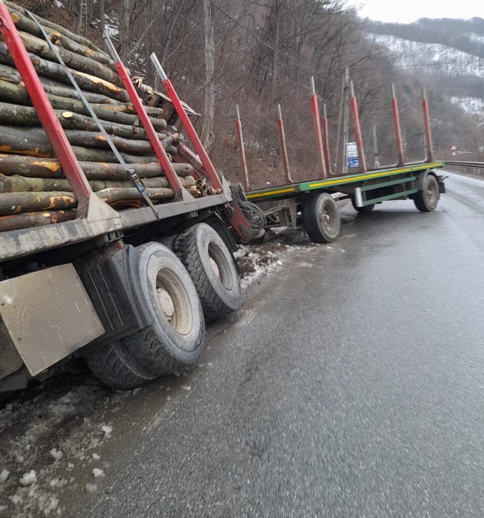 Traficul rutier se desfasoara alternativ pe drumul judetean.