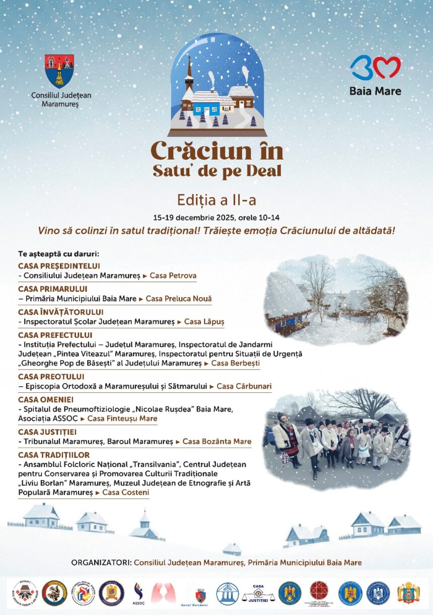 Consiliul Județean Maramureș, împreună cu Primăria Municipiului Baia Mare, anunță lansarea celei de-a doua ediții a evenimentului „Crăciun în Satu’ de pe Deal”, care va avea loc în perioada 15–19 decembrie în spațiul autentic al Muzeului Satului din Baia Mare.