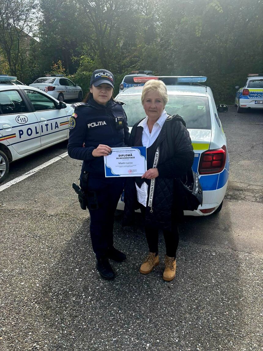Oamenii legii transmit felicitări femii pentru gestul făcut și aprecieri pentru spiritul civic de care a dat dovadă, reprezentând un exemplu demn de urmat.