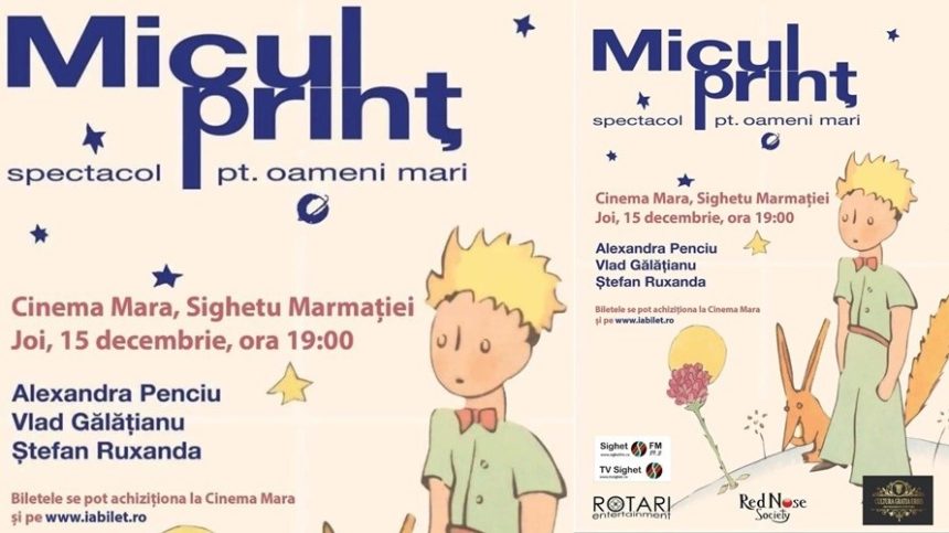 Muzică live, teatru, povestire…toate acestea într-un singur eveniment: „Micul Prinṭ – spectacol pentru oameni mari”, care va avea loc joi, 15 decembrie, de la ora 19:00, la Cinema Mara din Sighetu Marmației.