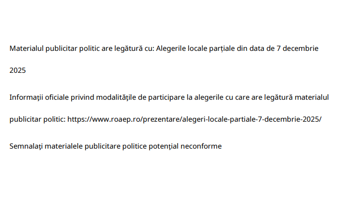 Citesti: NOTIFICARE PRIVIND TRANSPARENŢA CANDIDAT INDEPENDENT