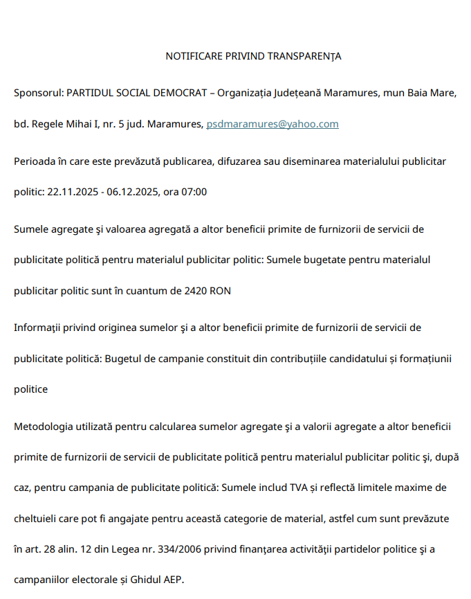 TV SIGHET > Blog > Emisiuni > NOTIFICARE PRIVIND TRANSPARENŢA PSD