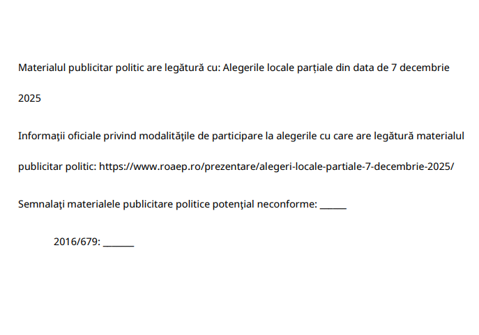 Urmatorul articol NOTIFICARE PRIVIND TRANSPARENŢA CANDIDAT INDEPENDENT