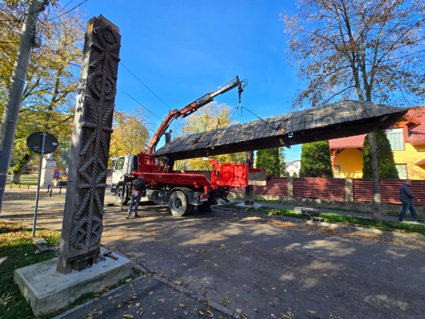 Citesti: Poarta maramureșeană de la intrarea în Parcul „Gradina Morii” a fost demontata temporar pentru a fi recondiționată