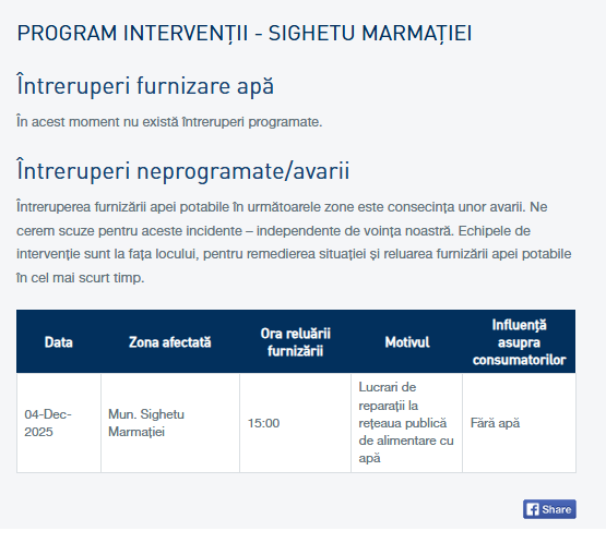 TV SIGHET > Blog > Stiri > Breaking News > Servicii publice > VITAL: Vezi până la ce oră va fi întreruptă furnizarea apei în Sighetu Marmației
