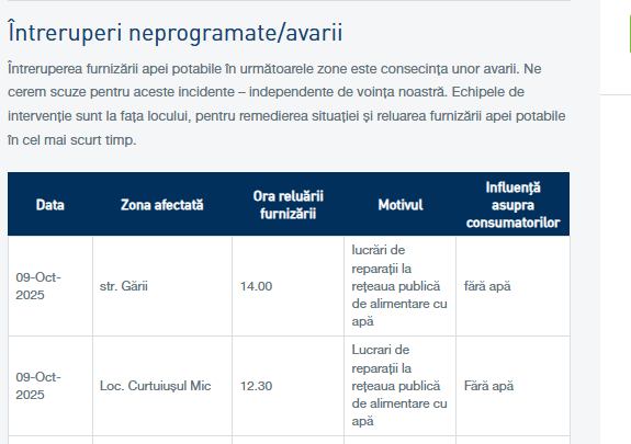 Servicii publiceStiri VITAL: Întreruperi ale furnizării apei în 9 octombrie Moldovan Dana publicat octombrie 9, 2025 Distribuie 0 Min de citit Distribuie Ti-ar putea placea si VIDEO: Nicolae Mișulec, apel la ministra Mediului să intervină pentru soluționarea problemelor maramureșenilor VIDEO: Municipiul Sighetu Marmației va găzdui Gala Bienalei de Arhitectură 2025 Un bărbat, bănuit de comiterea de infracțiuni sivice, reținut pentru 24 de ore Vezi cum va fi vremea joi, 9 octombrie VIDEO: Consiliul Județean Maramureș a alocat bani pentru monumentele istorice din județ Distribuie acest articole Facebook Twitter Copiaza link-ul Print Distribuie Articolul anterior Vezi cum va fi vremea joi, 9 octombrie Urmatorul articol Un bărbat, bănuit de comiterea de infracțiuni sivice, reținut pentru 24 de ore Lasa un comentariu Lasa un comentariu Lasă un răspuns Anulează răspunsulAdresa ta de email nu va fi publicată. Câmpurile obligatorii sunt marcate cu *Comentariu * Nume * Email * Site web Salvează-mi numele, emailul și site-ul web în acest navigator pentru data viitoare când o să comentez. Stay Connected13kFolloweriLike11kSubscribersSubscribeLatest News VIDEO: Nicolae Mișulec, apel la ministra Mediului să intervină pentru soluționarea problemelor maramureșenilor Evenimente locale Stiri octombrie 9, 2025 VIDEO: Municipiul Sighetu Marmației va găzdui Gala Bienalei de Arhitectură 2025 Evenimente locale Stiri octombrie 9, 2025 REPORTAJUL ZILEI: VÂRSTNICII DIN SIGHETU MARMAȚIEI, SĂRBĂTORIȚI LA DIRECȚIA DE ASISTENȚĂ SOCIALĂ Reportajul zilei octombrie 9, 2025 Un bărbat, bănuit de comiterea de infracțiuni sivice, reținut pentru 24 de ore Breaking News Stiri octombrie 9, 2025