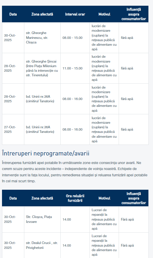 Servicii publiceStiri VITAL: Întreruperi ale furnizării apei în Baia Mare Moldovan Dana publicat octombrie 30, 2025 Distribuie 0 Min de citit Distribuie Ti-ar putea placea si VIDEO: O nouă provocare pentru clubul de robotică ALPHA 88 al Școlii Gimnaziale George Coșbuc din Sighetu Marmației Cardul european de asigurări de sănătate – protecție extinsă pentru cetățeni, simplificare și durată mai mare de valabilitate Vreme caldă astăzi în Maramureș VIDEO: Agenția Județeană pentru Ocuparea Forței de Muncă Maramureș va implementa un proiect dedicat tinerilor vulnerabili pe piața muncii VIDEO: Luminația, ziua în care înălțăm rugăciuni pentru cei trecuți în veșnicie Distribuie acest articole Facebook Twitter Copiaza link-ul Print Distribuie Articolul anterior Vreme caldă astăzi în Maramureș Urmatorul articol Cardul european de asigurări de sănătate – protecție extinsă pentru cetățeni, simplificare și durată mai mare de valabilitate Lasa un comentariu Lasa un comentariu Lasă un răspuns Anulează răspunsulAdresa ta de email nu va fi publicată. Câmpurile obligatorii sunt marcate cu *Comentariu * Nume * Email * Site web Salvează-mi numele, emailul și site-ul web în acest navigator pentru data viitoare când o să comentez. Stay Connected13kFolloweriLike11kSubscribersSubscribeLatest News VIDEO: O nouă provocare pentru clubul de robotică ALPHA 88 al Școlii Gimnaziale George Coșbuc din Sighetu Marmației Evenimente locale Stiri octombrie 30, 2025 Cardul european de asigurări de sănătate – protecție extinsă pentru cetățeni, simplificare și durată mai mare de valabilitate Sănătate Stiri octombrie 30, 2025 Vreme caldă astăzi în Maramureș Breaking News Stiri octombrie 30, 2025 REPORTAJUL ZILEI: AU FOST DESEMNAȚI REPREZENTANȚII CONSILIULUI LOCAL ÎN CADRUL UNOR CONSILII DE ADMINISTRAȚIE Reportajul zilei octombrie 29, 2025