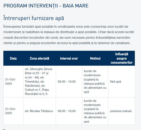 Servicii publiceStiri VITAL: Întreruperi ale furnizării apei marți, 21 octombrie Moldovan Dana publicat octombrie 20, 2025 Distribuie 0 Min de citit Distribuie Ti-ar putea placea si VIDEO: Victorie pentru CSM Sighet în partida cu Sticla Arieșul Turda VIDEO: Vremea extremelor: de la îngheț la temperaturi de primăvară Peste 200 de maramureșeni au făcut, în această toamnă, primul pas pentru o carieră în poliție (VIDEO) APEL CĂTRE BENEFICIARII TICHETELOR EDUCAȚIONALE: Mai sunt 21 milioane lei de cheltuit de către elevii vulnerabili din toată țara (VIDEO) SIGHETU MARMAȚIEI – tânăr cercetat pentru nerespectarea unei hotărâri judecătorești Distribuie acest articole Facebook Twitter Copiaza link-ul Print Distribuie Articolul anterior (VIDEO) APEL CĂTRE BENEFICIARII TICHETELOR EDUCAȚIONALE: Mai sunt 21 milioane lei de cheltuit de către elevii vulnerabili din toată țara Urmatorul articol Peste 200 de maramureșeni au făcut, în această toamnă, primul pas pentru o carieră în poliție Lasa un comentariu Lasa un comentariu Lasă un răspuns Anulează răspunsulAdresa ta de email nu va fi publicată. Câmpurile obligatorii sunt marcate cu *Comentariu * Nume * Email * Site web Salvează-mi numele, emailul și site-ul web în acest navigator pentru data viitoare când o să comentez. Stay Connected13kFolloweriLike11kSubscribersSubscribeLatest News VIDEO: Victorie pentru CSM Sighet în partida cu Sticla Arieșul Turda Sport Stiri octombrie 20, 2025 VIDEO: Vremea extremelor: de la îngheț la temperaturi de primăvară Social Stiri octombrie 20, 2025 REPORTAJUL ZILEI: APEL PENTRU REABILITAREA INFRASTRUCTURII RUTIERE DIN CARTIERUL POPA LUPU Reportajul zilei octombrie 20, 2025 Peste 200 de maramureșeni au făcut, în această toamnă, primul pas pentru o carieră în poliție Evenimente locale Stiri octombrie 20, 2025