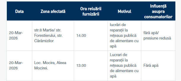 Servicii publiceStiri VITAL: Vezi unde se întrerupe furnizarea apei vineri, 20 martie Moldovan Dana publicat martie 20, 2026 Distribuie 0 Min de citit Distribuie Ti-ar putea placea si Vremea va fi astăzi apropiată de normalul termic al perioadei MANIFEST: CENTRUL DE EDUCAȚIE INCLUZIVĂ DIN SIGHETU MARMAȚIEI – UN SPRIJIN ESENȚIAL PENTRU COPIII CU CERINȚE EDUCAȚIONALE SPECIALE Ediție specială la Sighet FM: Anca Boloș, despre parenting conștient, în emisiunea „Cu Alexandra, pe frecvență” Ultimele zile pentru reducerea de 10% la impozite Consiliul Județean Maramureș accelerează eforturile de reducere a risipei alimentare, influențând politicile publice prin proiectul european CIBUS Distribuie acest articole Facebook Twitter Copiaza link-ul Print Distribuie Articolul anterior Vremea va fi astăzi apropiată de normalul termic al perioadei Lasa un comentariu Lasa un comentariu Lasă un răspuns Anulează răspunsulAdresa ta de email nu va fi publicată. Câmpurile obligatorii sunt marcate cu *Comentariu * Nume * Email * Site web Salvează-mi numele, emailul și site-ul web în acest navigator pentru data viitoare când o să comentez. Stay Connected13kFolloweriLike11kSubscribersSubscribeLatest News Vremea va fi astăzi apropiată de normalul termic al perioadei Breaking News Stiri martie 20, 2026 MANIFEST: CENTRUL DE EDUCAȚIE INCLUZIVĂ DIN SIGHETU MARMAȚIEI – UN SPRIJIN ESENȚIAL PENTRU COPIII CU CERINȚE EDUCAȚIONALE SPECIALE Evenimente locale Manifest martie 19, 2026 Ediție specială la Sighet FM: Anca Boloș, despre parenting conștient, în emisiunea „Cu Alexandra, pe frecvență” Evenimente locale Stiri martie 19, 2026 Ultimele zile pentru reducerea de 10% la impozite Administrație Stiri martie 19, 2026