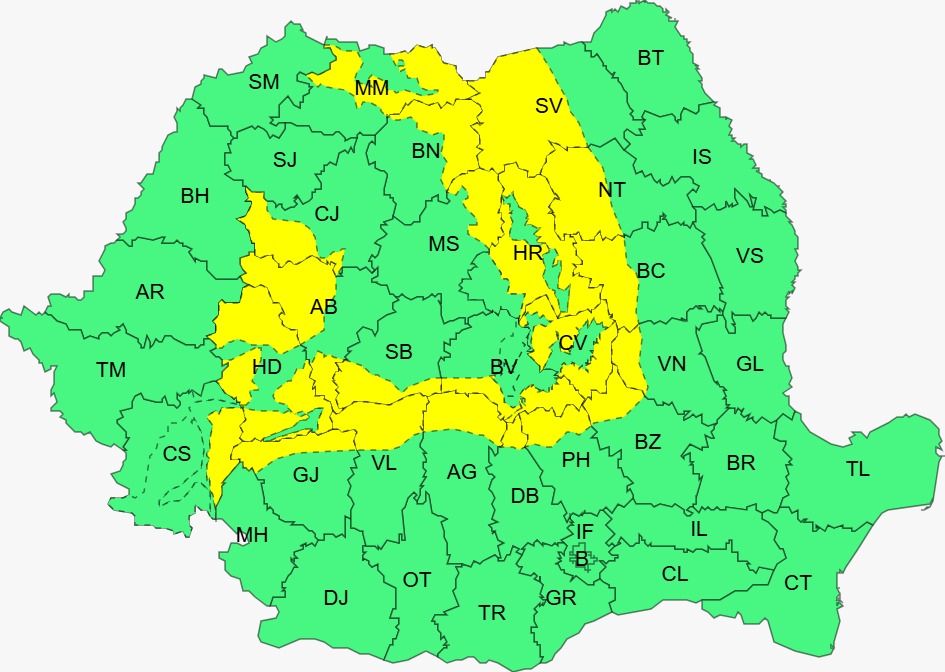 Temporar vântul va avea intensificări în cea mai mare parte a țării, cu viteze în general de 40…55 km/h, iar în zona montană înaltă rafalele vor fi de peste 60…80 km/h.